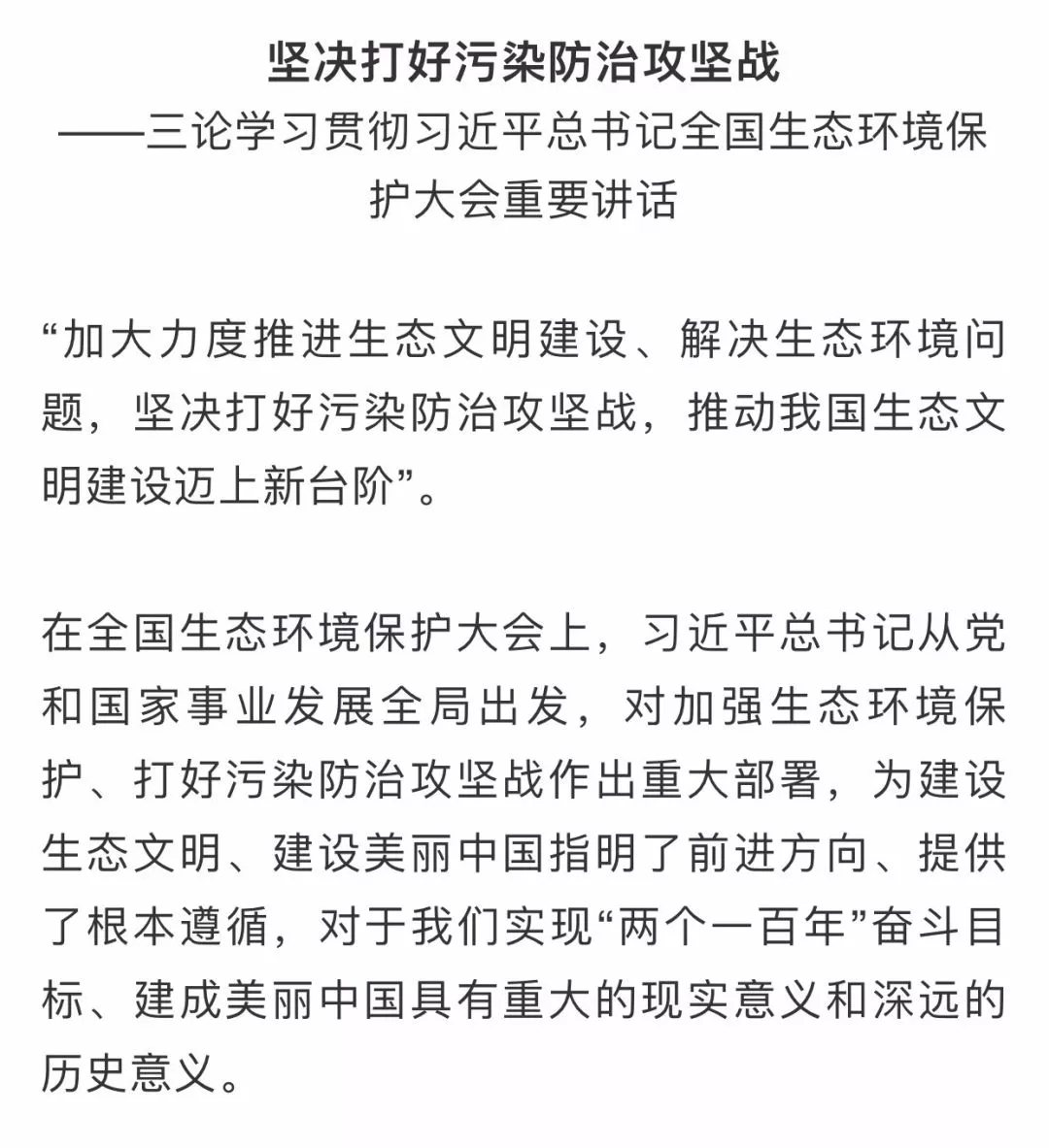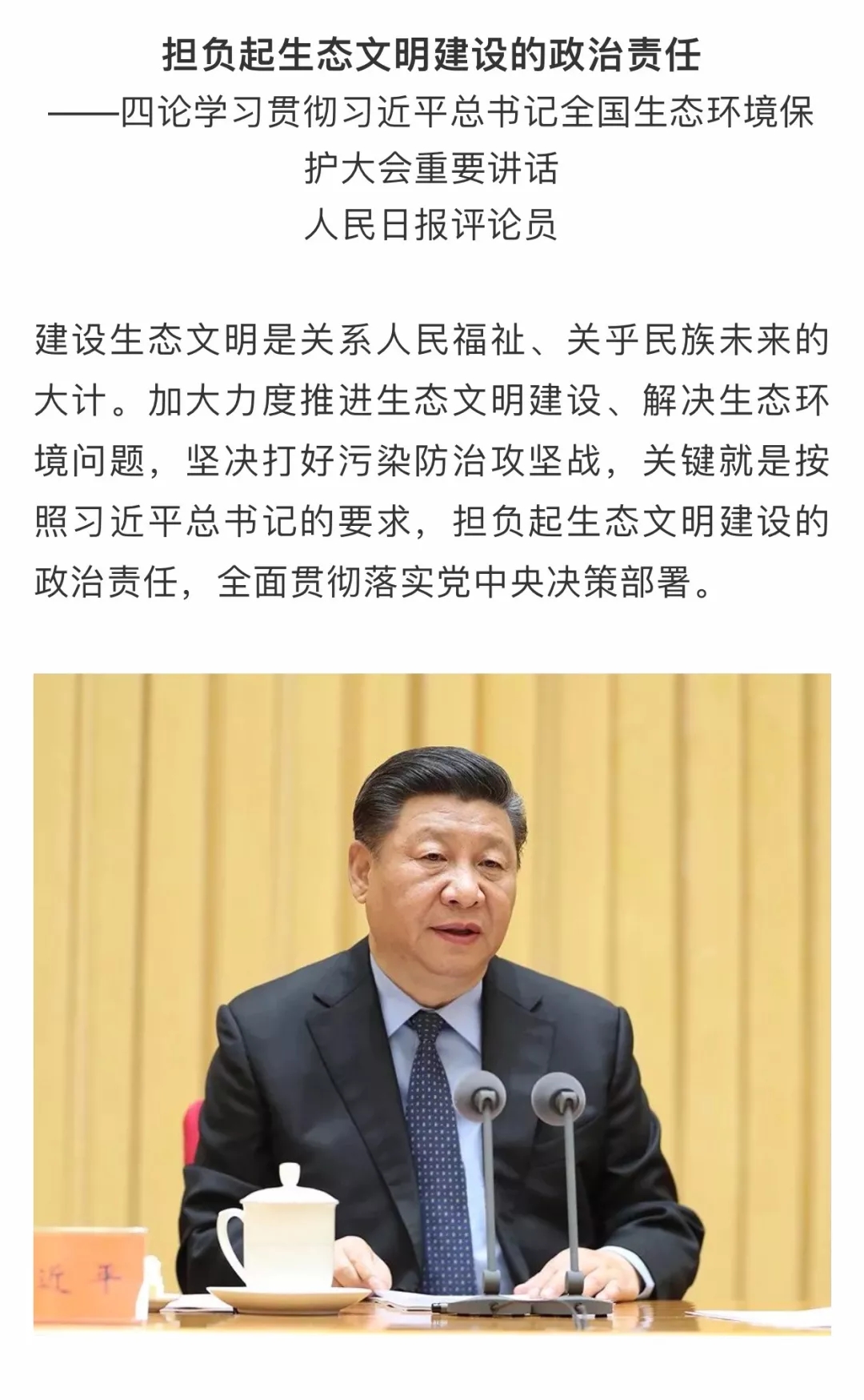 人民日?qǐng)?bào)評(píng)論員:三、四論學(xué)習(xí)貫徹習(xí)近平總書(shū)記全國(guó)生態(tài)環(huán)境保護(hù)大會(huì)重要講話(huà)