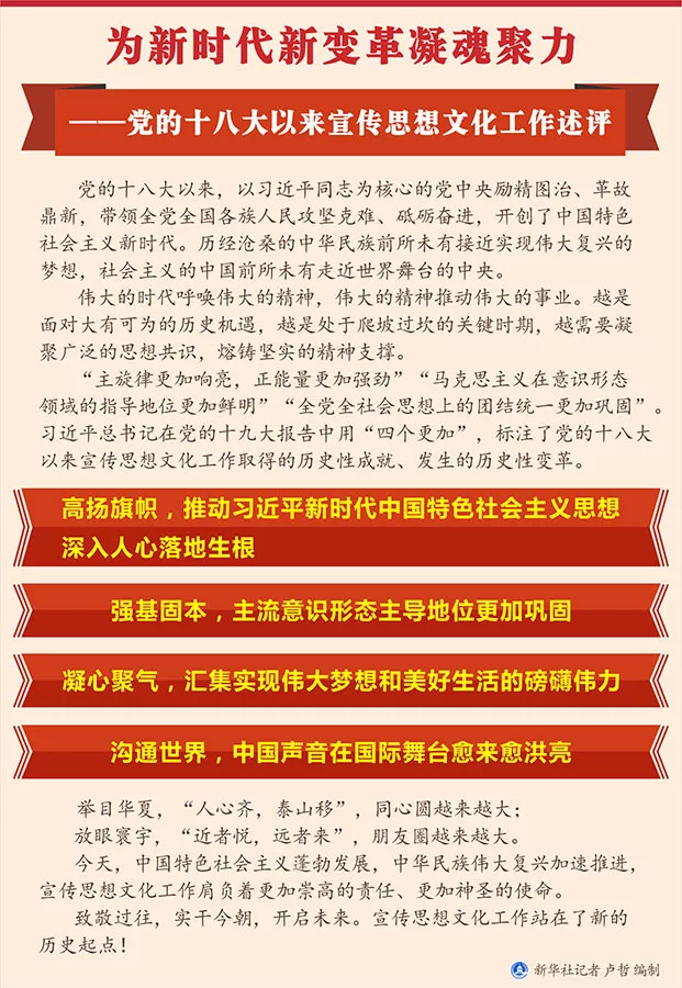 為新時(shí)代新變革凝魂聚力 ── 黨的十八大以來(lái)宣傳思想文化工作述評(píng)