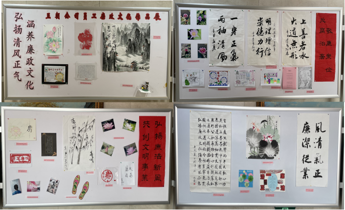 本次主題廉政文化作品展旨在推動(dòng)黨史學(xué)習(xí)教育與正風(fēng)肅紀(jì)工作相結(jié)合,筑牢黨員干部廉潔履職思想防線,不斷提升公司廉政文化建設(shè)水平。5月初面向全體員工開展廉政文化作品征集活動(dòng)以來,得到了廣大職工的積極響應(yīng)?;顒?dòng)共征集到包含書法、繪畫、剪紙、攝影、工藝品制作、手抄報(bào)等多種形式的廉政作品30余件,經(jīng)過集體評選,選出一、二、三等獎(jiǎng)和紀(jì)念獎(jiǎng)作品分列四組展板,全部進(jìn)行展出。