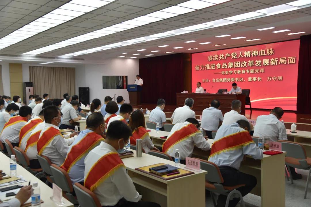 萬守朋以《賡續(xù)共產(chǎn)黨人精神血脈 奮力推進食品集團改革發(fā)展新局面》為題,圍繞銘記黨的奮斗歷程,矢志不渝推進黨的偉大事業(yè);集團改革發(fā)展的生動實踐,彰顯集團系統(tǒng)各級黨組織的凝聚力戰(zhàn)斗力和廣大黨員的先鋒本色;大力弘揚中國共產(chǎn)黨人的擔當精神,再接再厲、攻堅克難,建功新時代等三方面,講授了黨史學習教育專題黨課,激勵廣大黨員干部職工進一步奮發(fā)有為,為集團“十四五”開好局,起好步再做新的貢獻。
