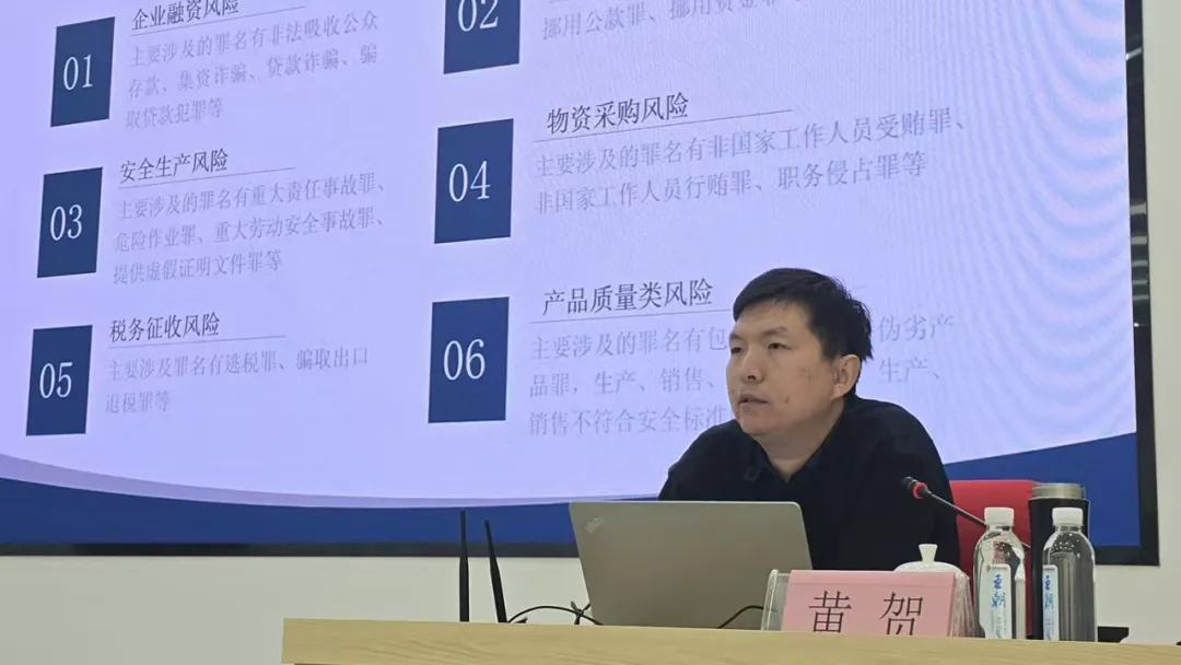 為不斷強化集團系統(tǒng)干部職工法治思維,提升合規(guī)經(jīng)營意識,提高風(fēng)險防控能力,筑牢預(yù)防刑事犯罪堅實防線,今天下午,集團法務(wù)部、紀(jì)檢監(jiān)察一室、紀(jì)檢監(jiān)察二室聯(lián)合王朝公司組織召開“預(yù)防刑事犯罪專題培訓(xùn)會”。集團所屬各企事業(yè)單位紀(jì)檢監(jiān)察組織主要負責(zé)同志、總法律顧問,法務(wù)與紀(jì)檢監(jiān)察部門相關(guān)工作人員共計100余人參會。