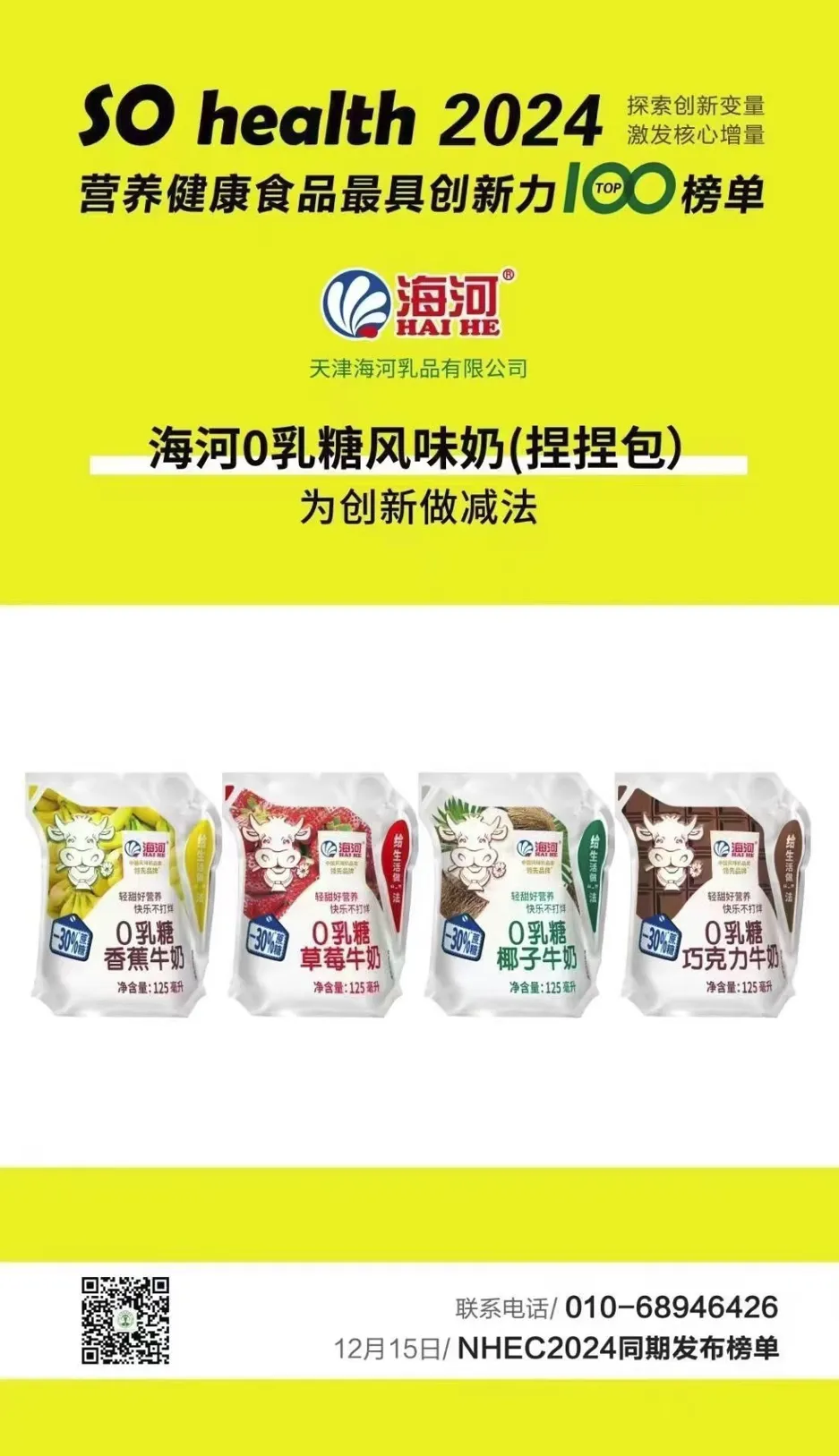 海河0乳糖風(fēng)味奶成功入選“SO health營養(yǎng)健康食品最具創(chuàng)新力TOP100”榜單